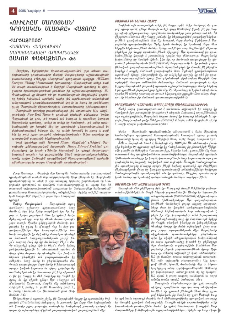 William Saroyan Literary Foundation International, San Francisco, USA Key speaker on the 8th annual “Celebrating Saroyan” event: “Writing is a Saroyanesque Engagement”